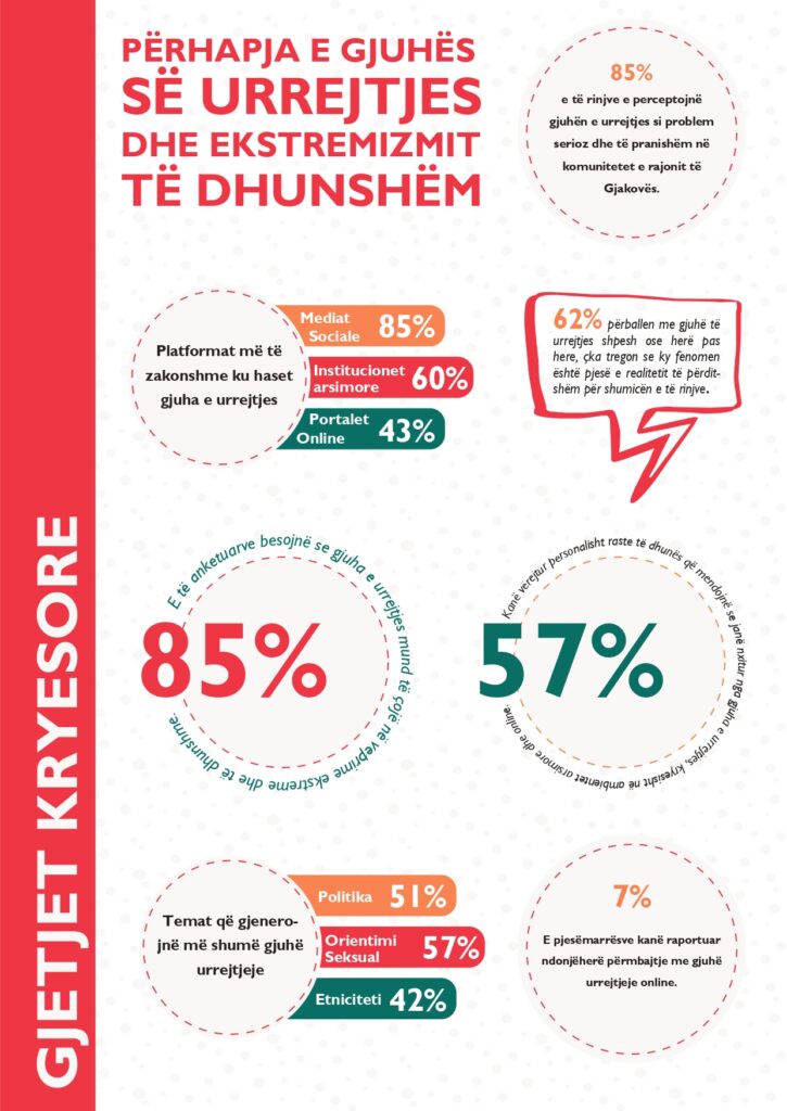 Nga hulumtimi ynë, 85% e të anketuarve besojnë se gjuha e urrejtjes është një hap drejt ekstremizmit dhe dhunës.